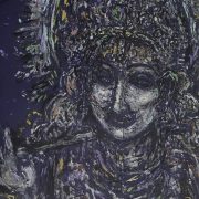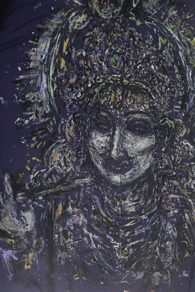 Supreme person. Original godhead of all universes. Silk painting on jacket.